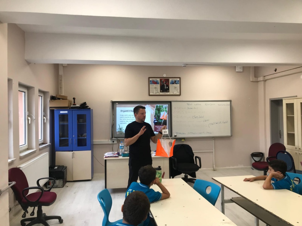 Okulumuz 5.Sınıf öğrencilerine yönelik Oryantiring Eğitimi verildi.Daha önceki yıllarda okulumuzda görev yapmış olan Sosyal Bilgiler Öğretmeni Hasan ŞAHİN ve Beden Eğitimi Öğretmenimiz Nuri TURAN'ın vermiş oldukları eğitimde öncelikle Oryantiring sporu tanıtılırken,kavramlar ve haritalar üzerinde bir sunum gerçekleştirildi.Sonrasında okul bahçesinde ise uygulamalı olarak birkaç etkinlik yapıldı.Eğitimde emeği geçen öğretmenlerimize teşekkür ediyoruz.