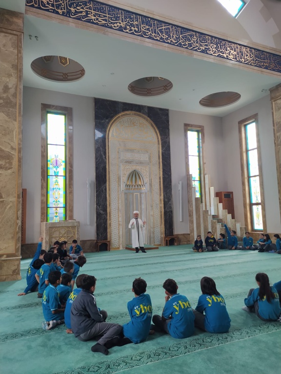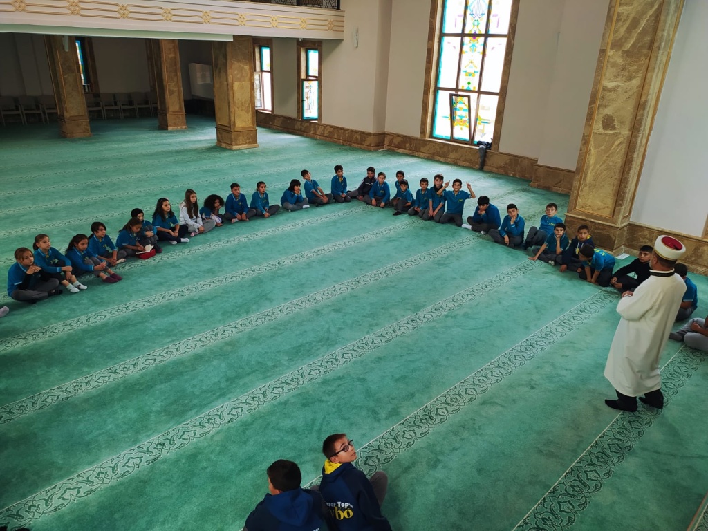 Programımız kapsamında ilk olarak Hacı Ergün Gürbüz Camii’ne gittik. Caminin imam hatibi Sayın Asım Kabaoğlu bizleri karşıladı ve öğrencilerimize caminin bölümleri, mimarisi ve ibadetlerdeki işlevi hakkında bilgilendirmelerde bulundu. Ayrıca cami adabı, cemaatle ibadetin önemi ve camilerin toplum hayatımızdaki yeri üzerine öğrencilerimizle sohbet etti. Ziyaretin ardından cami görevlileri tarafından öğrencilerimize ikramda bulunuldu.